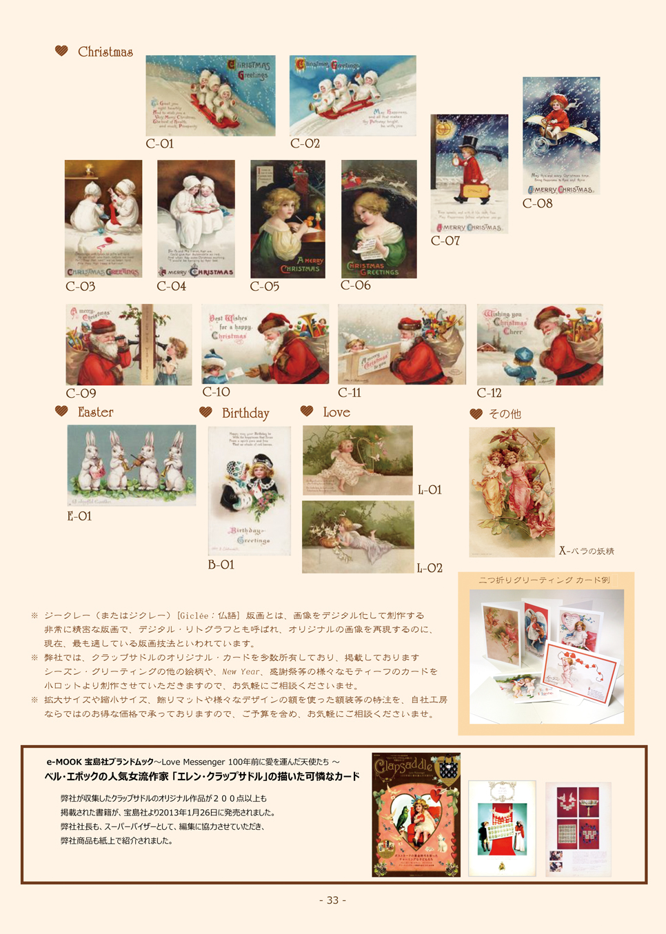 20世紀初めの欧米で人気グラフィック・アーティストとして活躍したエレン・クラップサドル(アメリカ)の原画をもとに、